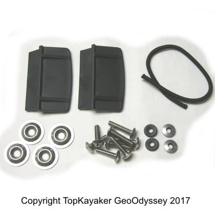 Parts included: four 1/4-20 long screws, four 1/4-20 short screws, four large stamped stainless steel washers, four neoprene bonded washers, 2 stabilizers and a short length of bungee cord. (The seat posts, aka Brackets part H, have the 1/4-20 nuts imbedded.) Use the link below to view instructions: