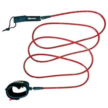 Bic brand 11 Foot Stand Up Paddle Board Leash with Ankle Strap. Might be used for sit-on-top kayaks in open water conditions. Comes with a detachable rail saver and swivels at each end. Color is red. Velcro cuff.