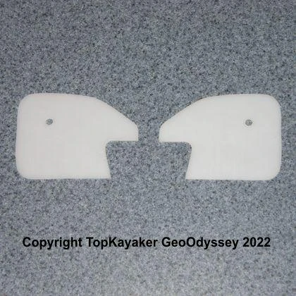 Classic FeatherCraft Shim-Sheaves. Sold as a pair, right and left are the same. These are the thinner parts found in the rudder body. See Both Thin and Thick Rudder Pieces. Thin Shim-Sheaves are approximately 4 inches long, 3 inches wide and about 1/16 of an inch in thickness (1.5mm).