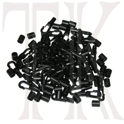 Bulk Pack for outfitters and big jobs! Finish the end of 1/4 inch shock cord with a closed hook. Use as replacements or for new custom work. Compatible with some paddle holders the Deck Net Kit, our Bungee Cord by the foot and most other shock cord used as kayak deck rigging including 3/16 inch bungee cord.