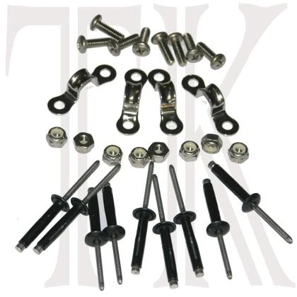 Use this kit to mount your Kayak Sailor onto a kayak. The Kayak Sailor comes with a mounting kit, this extra kit will let you mount yours onto a new 2nd kayak, or is handy when you purchase a 2nd hand sail. Kit Includes: 4 Stainless Harken® eye straps. 8 Stainless nuts. 8 Stainless bolts. 8 Stainless washers. 9 Aluminum tri-grip blind rivets.