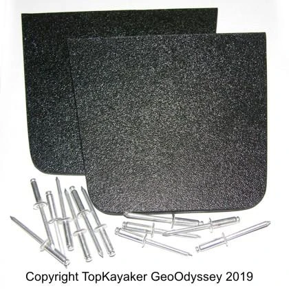 New Old Stock. Limited Supply. Information on this product is not complete! Best used to secure a seat to the edge of the cockpit coaming. Most likely for an Eddyline or Seaward brand kayak seat, similar to older seats such as a classic Current Designs Seat. One might expect this part to be covered up with self-adhesive foam padding as hip pads. Might be used for some custom seat installations. Comes with a dozen rivets. Each flange panel is 5 inches by 5 3/4 inches, about 3/16 of an inch thick. SEAASSY