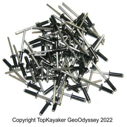 80 Pack of rivets. Best used as pop rivets for Mad River canoes with Aluminum Gunwales and a Royalex Hull (multi-layer plastic). Same as Mad River part number 9800426, very similar or same as Old Town Pop Rivets part number 01.1315.1558. Grip range is assumed to be as much as 1/2 inch. Comes in a package of 80 rivets.