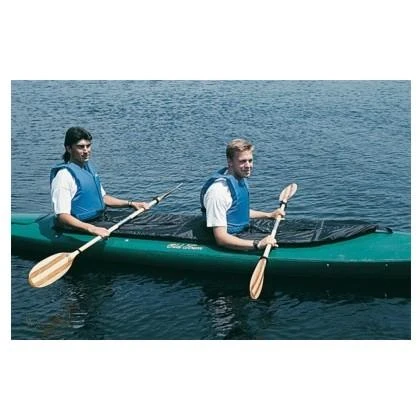 Old Town Spray Skirt for the Twin Otter tandem kayak circa 2003 (give or take). Assumed to fit cockpits approximately 26 inches wide by 97 inches long (give or take a few inches), with rounded front edge. Made for two paddlers in a two-man kayak. Might fit similar to the Seals size T-200.