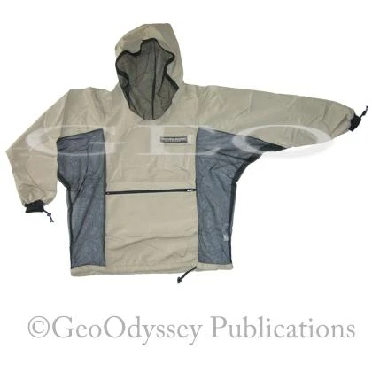 The Elite Edition Bug Shirt (Now with Free Bug Gloves!) is the most versatile and popular high performance bug proof clothing available. The no-see-um face mesh provides excellent visibility while it protects against even the tiniest no-see-ums and sand fleas. The no-see-um mesh vent panels in the sleeves and sides allow cooling breezes in but keep biting insects out. The zippered hood can be easily thrown back, and fits over a hat, cap or hard hat. A drawstring at the waist provides a positive seal at the bottom. The ribbed cuffs and elastic cord adjusters at the wrist keep blackflies, no-see-ums and ticks out, but keeps blood flowing to your hands.
