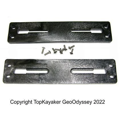 The accessory mounting system, for the late model Old Town Predator, consists of strategically placed high-strength polyethylene plates, this means no more drilling into your boat hull. See Example Photo with Rod Holders. 11.25 inches long, 2.5 inches wide, .5 inch thick. Four screw holes are 10.25 and 1.25, all on center. Made with slots for tracks (aka trax). These plates are durable and easy to customize with rod holders, fish finders, slide tracks, GPS and much more. Order as replacement plates, or as extras to make switching out pre-rigged gear as quick as 4-screws. This kit contains 2 plates and mounting hardware. This is an updated version of Old Town part number 01.1332.0022, made in China.