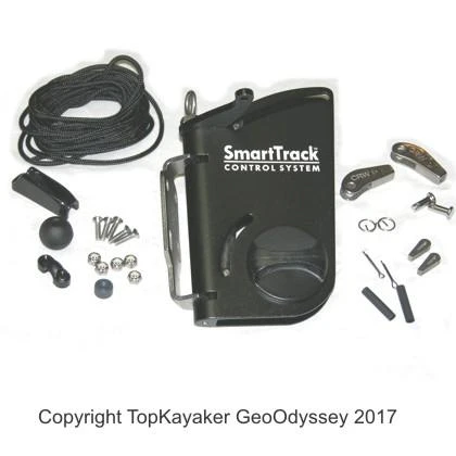 Important: This kit comes with a mounting bracket similar to the Necky – Old Town – Ocean Kayak Rudder Bracket. The Smart Track bracket has four holes. Holes are 3/4 of an inch side to side, on center. Holes fit a range 1 1/4 to 1 5/8, top to bottom. Bottom holes are oval. Check the holes on the stern of your kayak if needed. The Smart Track 4-screw bracket can only be used with the Smart Track blade housing.