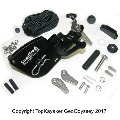 Surf Ski Version with EXTENDED tiller plate. The SmartTrack short pin is a top mount blade housing that installs on kayaks with a rudder pivot hole located on a flat or stepped down area on the rear deck. The housings for these secure with a set screw.