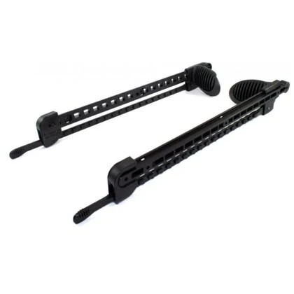 Use as replacement parts for Wilderness Systems kayaks, or add to other kayaks that do not have foot pegs. Best used for sit-in-side kayaks for easier adjustment of foot pegs. You do not have to reach far inside the cockpit to adjust for leg length. Handy for home built kayaks too. Slidelock Foot Braces are common on recent model Wilderness Systems kayaks. Made of plastic and comes as a full kit, right and left foot braces, with screw bolts commonly used for mounting to sit-in-side kayaks. Track is 19 inches long, not including the adjustment wand. Bolt holes are 14 5/8 inches on center, with additional holes along the length of the track that accommodate other sizes. Not for rudder foot controls. (alternative part numbers 8023040, 9800813 and 8025253)