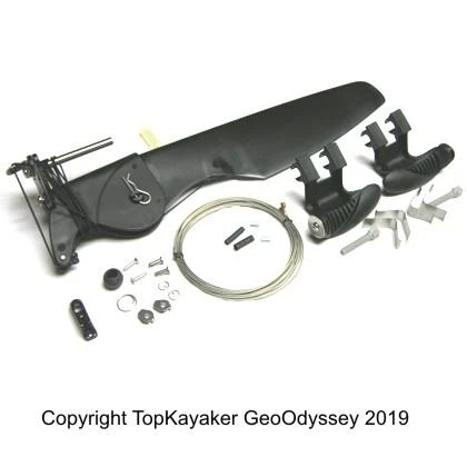 Rudder Kit Includes: Flow Rudder Assembly (03211), Cables and Fittings, Adjustment Knob, Split Ring, Lift Line and Cleat, Wear Washers, Pin Bushing, Mounting Hardware and Curved Toe Pedals (with spring clips), so there is no need to remove your existing rails. Your kayak will need Cable Tubes pre-installed.