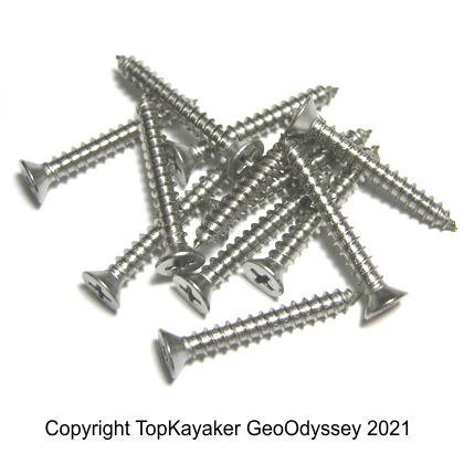 A dozen stainless steel gunwale screws for Mad River canoes with wooden gunwales and a fiberglass or kevlar (composite) hull. 1 1/4 inches long, Phillips head. Original Voyageur – Mad River Vermont part number 300991. Sold as a 12 pack. WOODCANOE